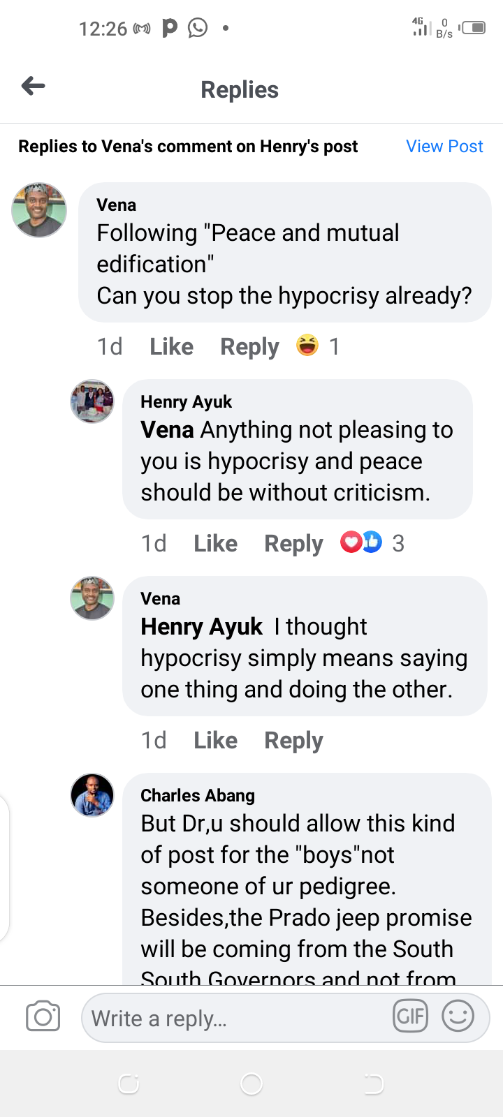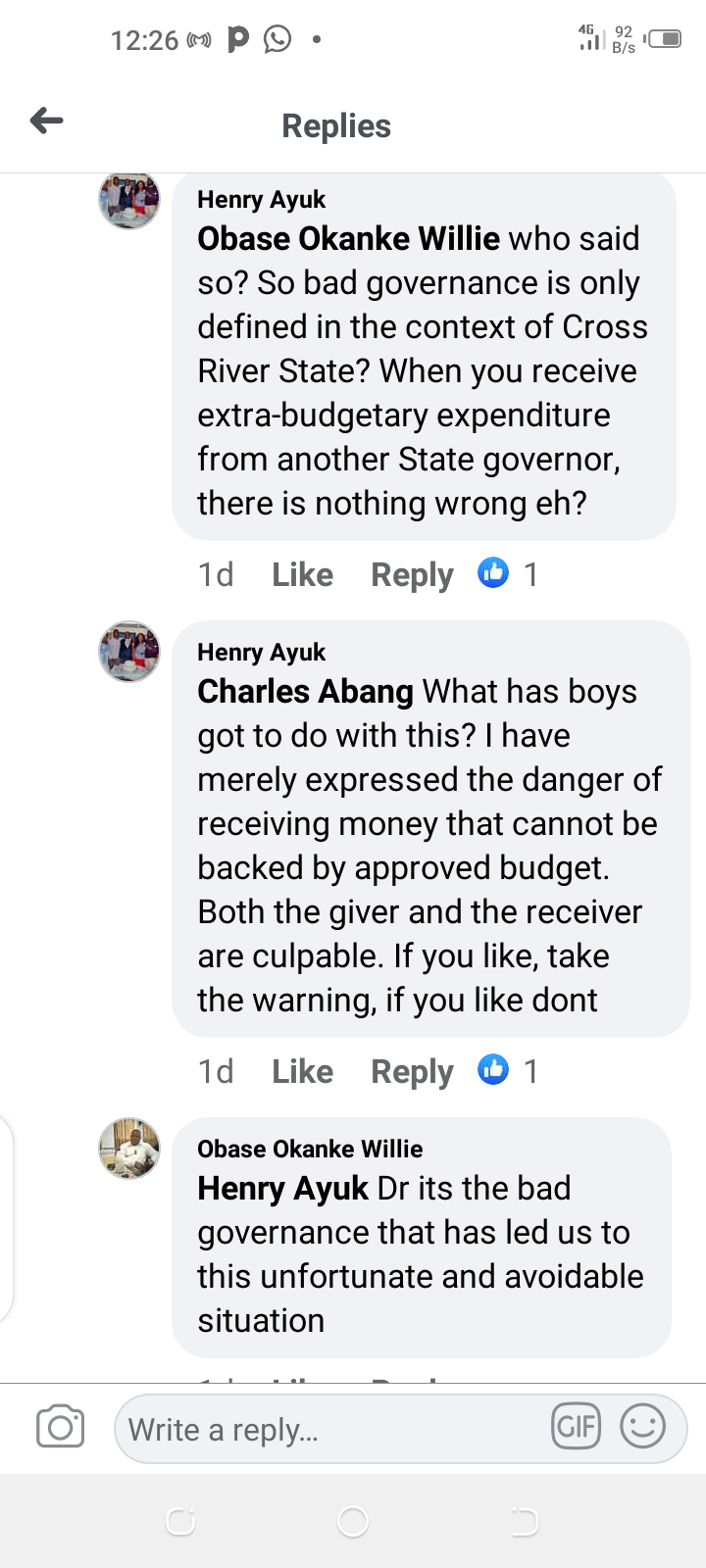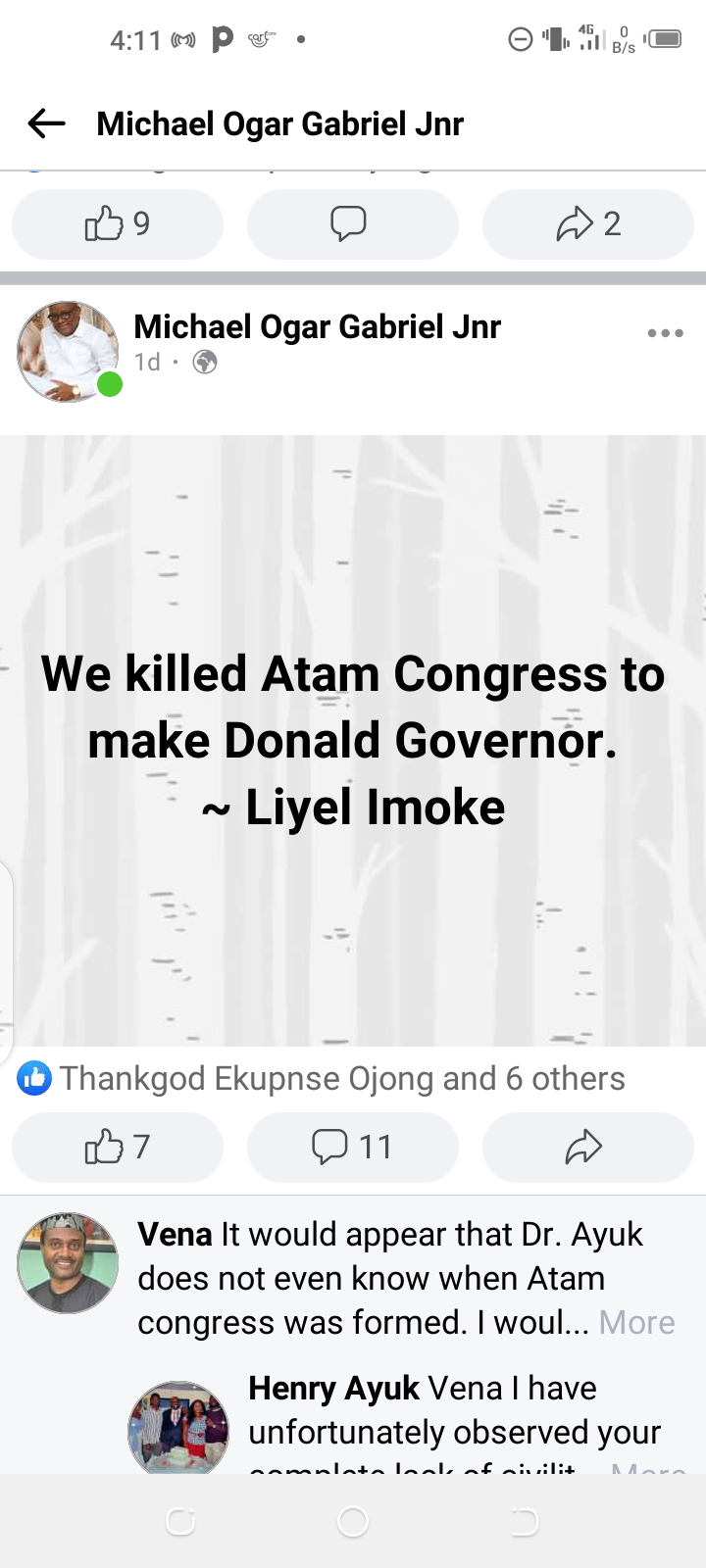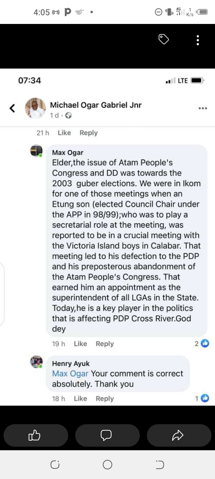 See reactions of the duos,Dr Henry Egbe Ayuk a former chairman of old ikom & a big wig of the APC & Hon Venatius Nkem an elder stakes man in CRS politics.