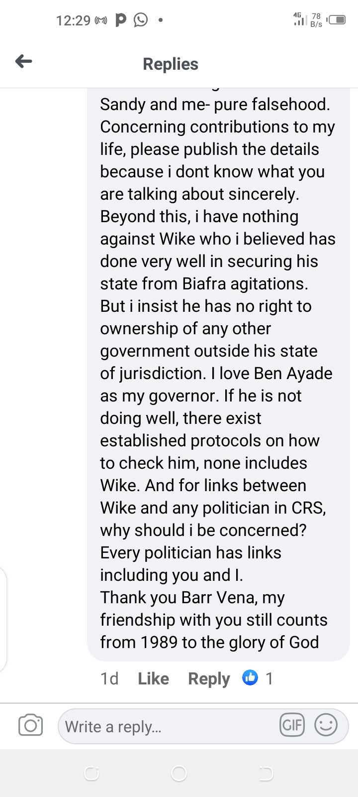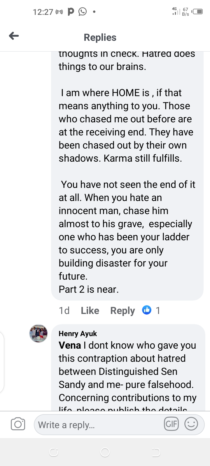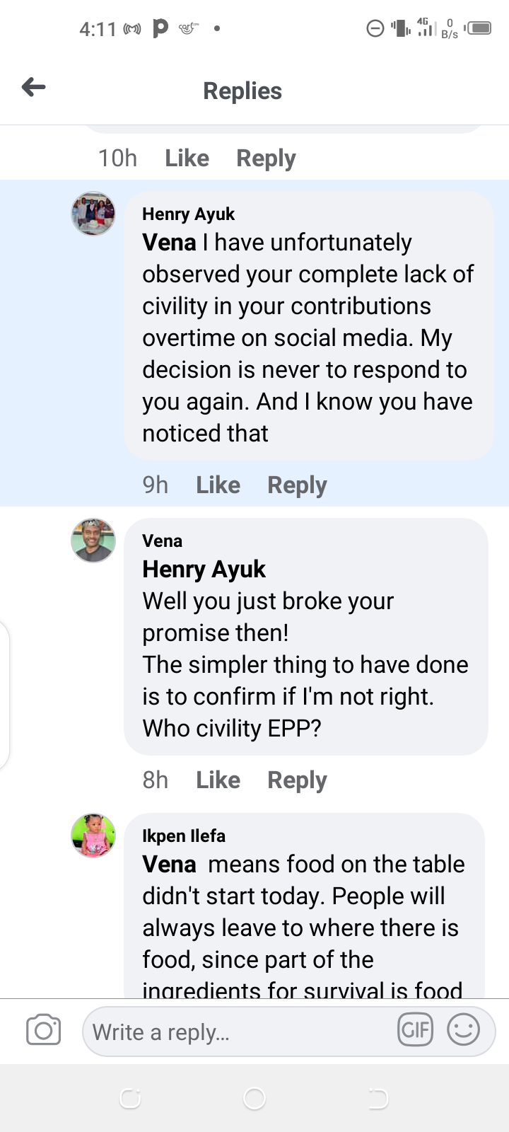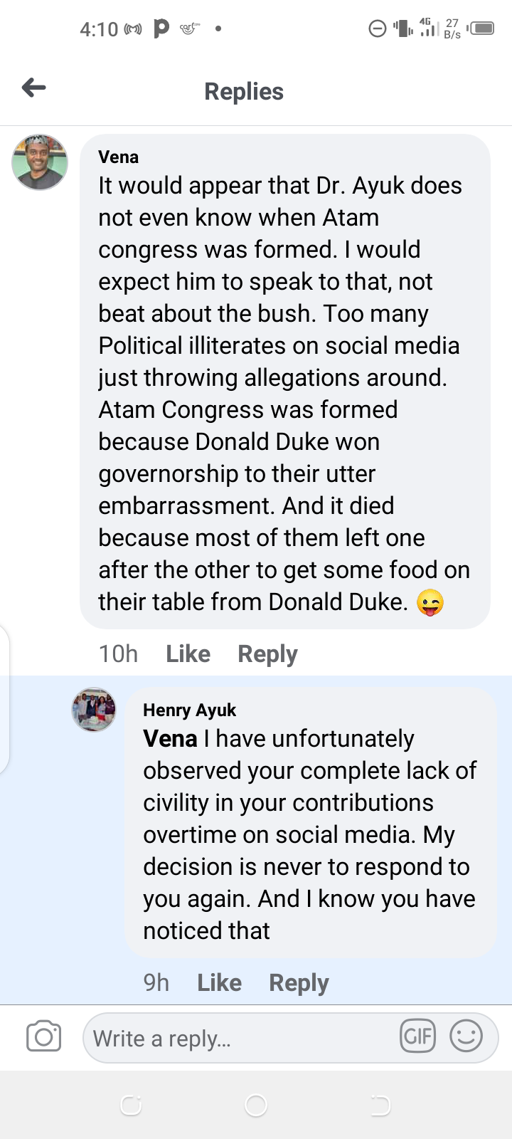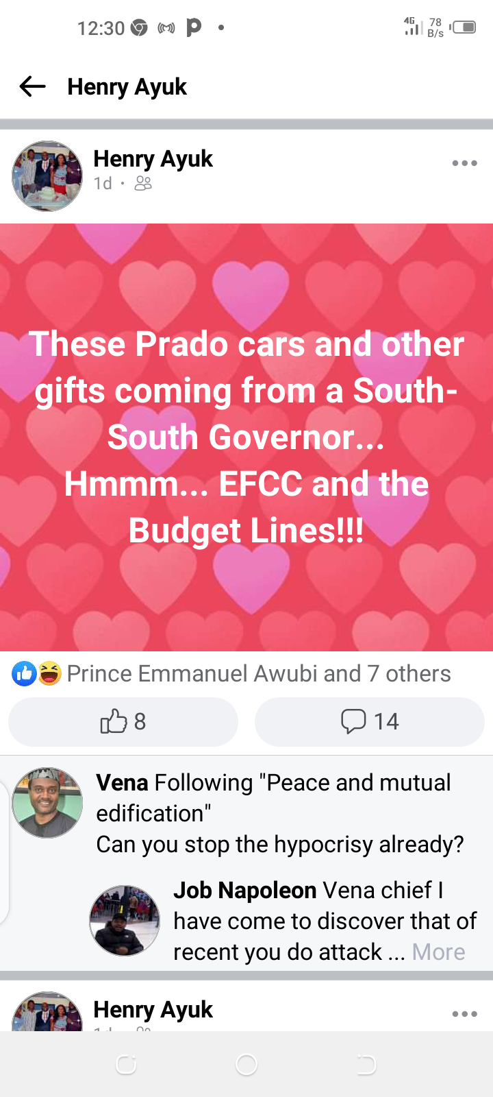 See reactions of the duos,Dr Henry Egbe Ayuk a former chairman of old ikom & a big wig of the APC & Hon Venatius Nkem an elder stakes man in CRS politics.