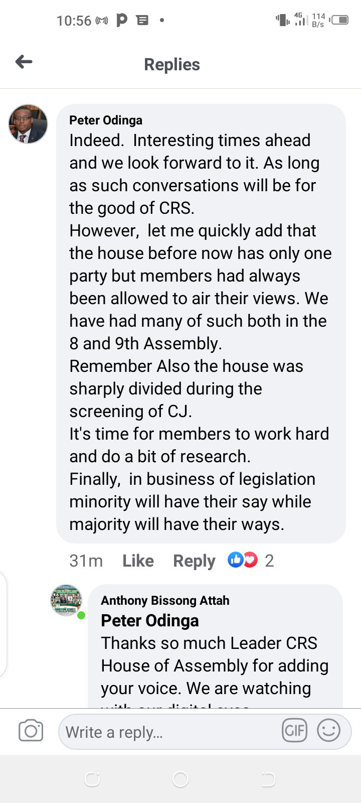 Recall that the His Excellency the Governor of CRS has recently defected with at about 23 assembly members to the APC leaving about 7 behind in the PDP hence Anthony Bissong Attah had course to make strong statements as it concerns the speaker managing opposition relatively for the first time.