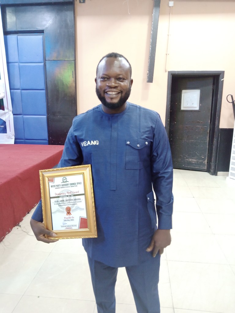 Congratulations eld.amb.victor Abang CEO Vibang Enterprise & Hotel de Vanessa ikom for yet another deserving award as a Mark of your Grassroots Empowerment and Development from IPAC CRS